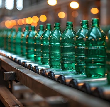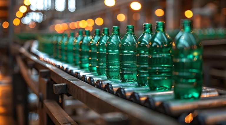 Linea de producción para el llenado de botellas de PET impulsada por Controlador Lógico Programable